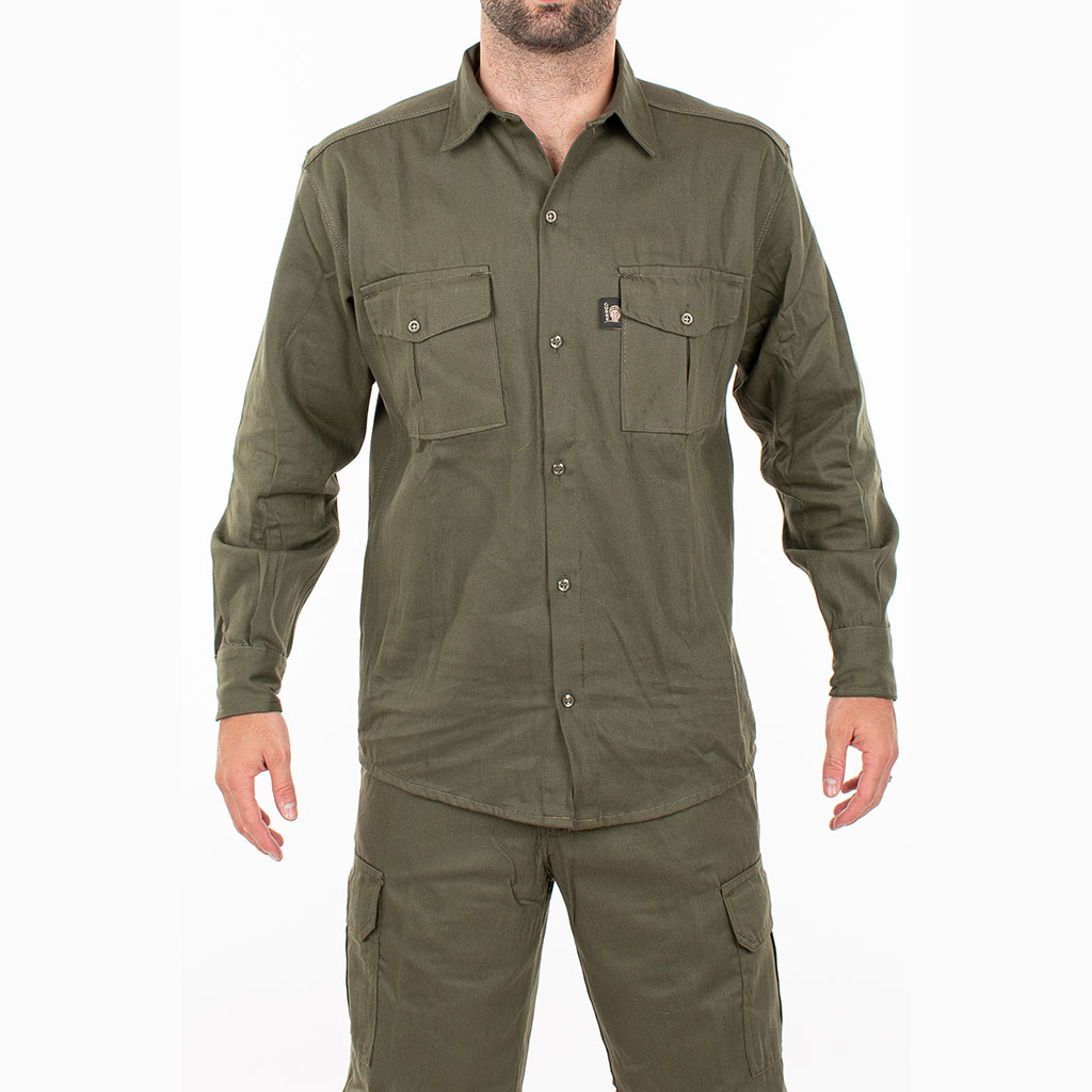 Camisa de trabajo para hombre confeccionada en gabardina 100% algodon con costuras reforzadas para mayor durabilidad y resistencia. Ver guía de talles